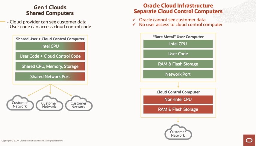 Isolation of workload means you have separate computers that control the user data and a completely separate set of control computers that does the processing which means that Oracle cannot see the users’ data and no user can access the control data. So, there won’t be any noisy neighbours,” he said.